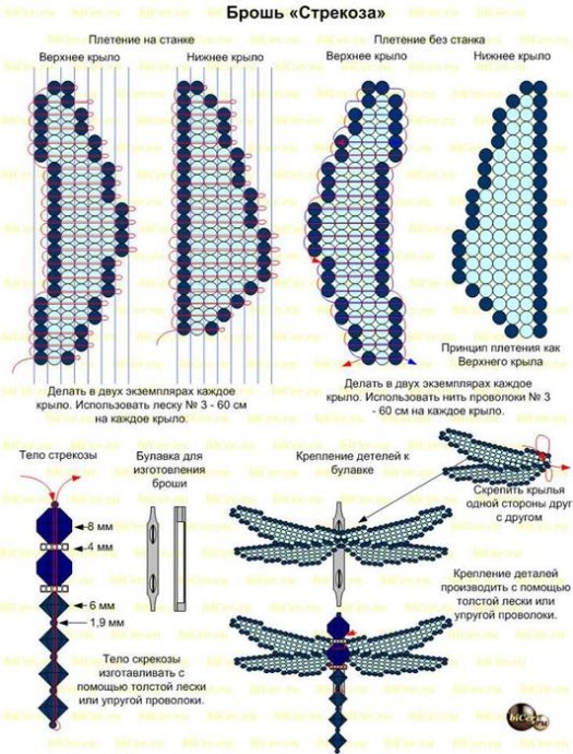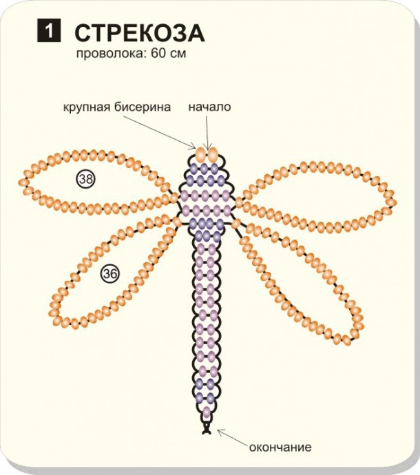 Стрекозы из бисера будут очаровывать нежной полупрозрачностью, если правильно подобрать бисер.