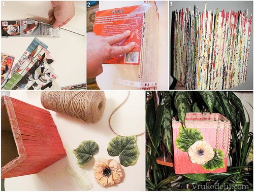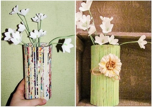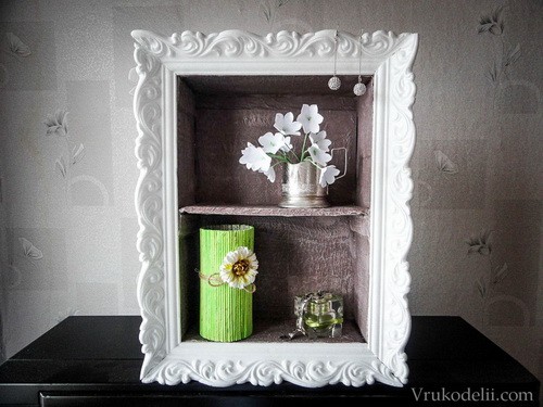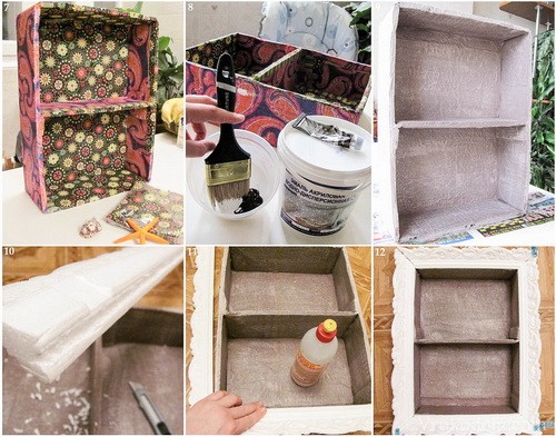 Декоративные полочка и вазон из картонной коробки требуют бережного отношения и минимальной нагрузки.
