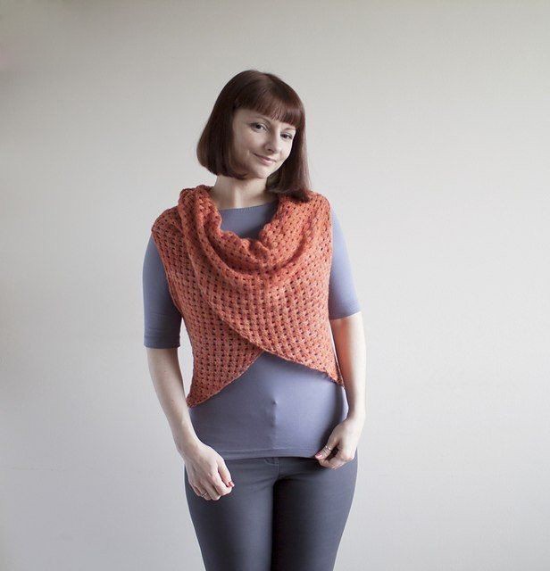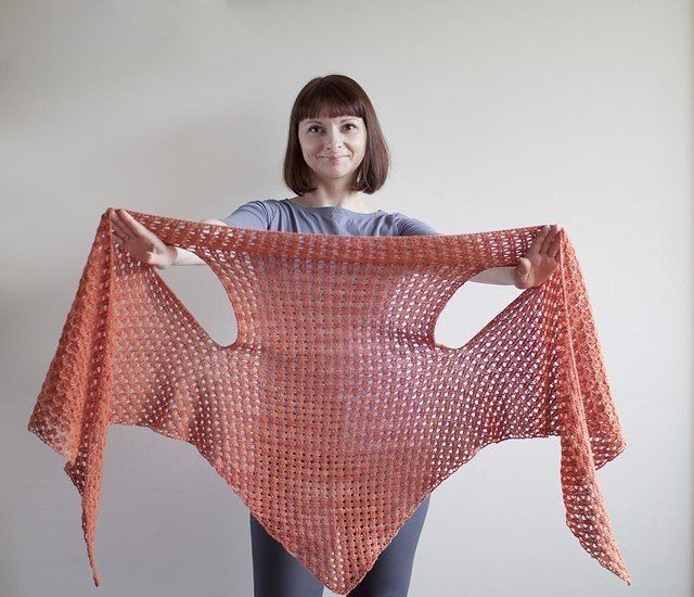 Вязаная шаль-трансформер это возможность создать много образов из простого треугольника.