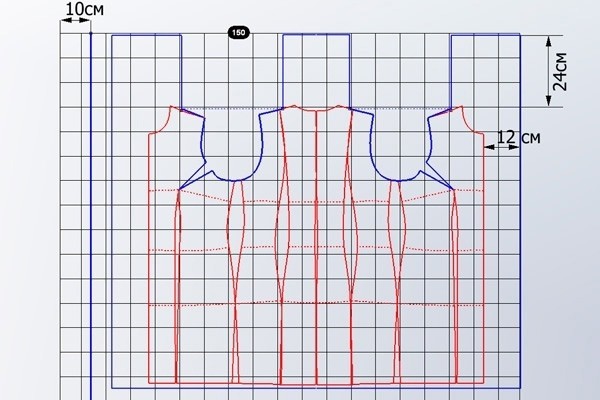 Выкройка этого пальто в разложенном виде представляет собой прямоугольник с огромным цельнокроеным воротником-стойкой и пришитыми рукавами.