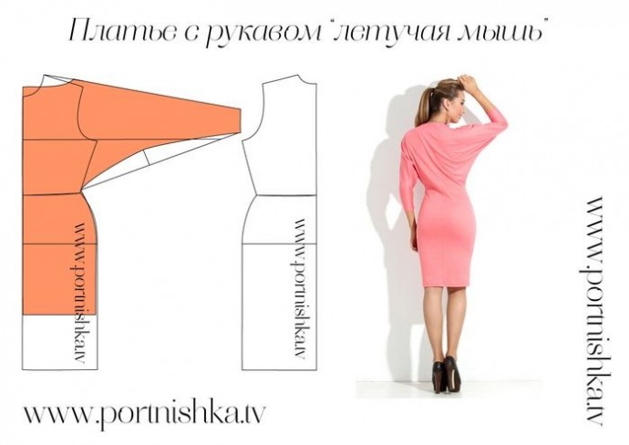 Рукав «летучая мышь» – широкий цельнокроеный рукав с проймой, начинающейся чуть выше линии талии, и сужающийся к запястью.