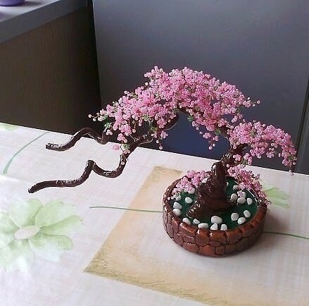Делаем сакуру из бисера, чтобы этот маленький вечно цветущий бонсай радовал нас бесконечно.