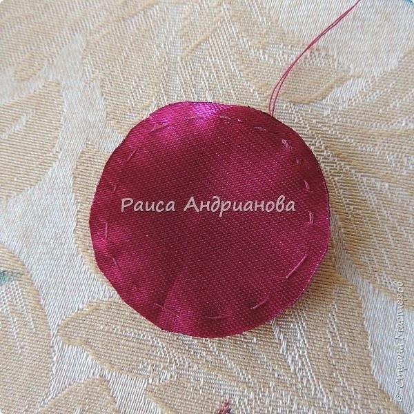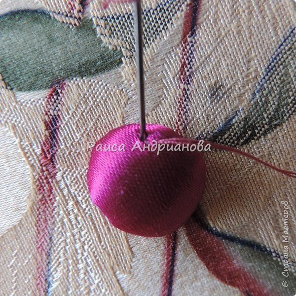 Плотно стянуть и потайными стежками (за краешки) пришить ягодку к ткани.