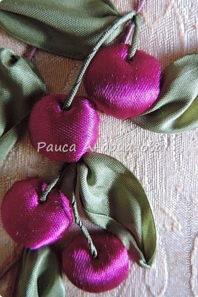 Для этого нужно вывести иглу с ниткой с изнаночной стороны вышивки в верхнюю часть ягоды.