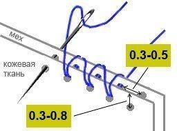 Скорняжный ручной шов выполняют простыми стежками через край справа налево с небольшим шагом между стежками. Стежок вперед, стежок на месте, в те же дырочки от иглы, и снова стежок вперед, стежок на месте и т. д. Опытные скорняки обязательно делают повтор стежка, то есть игла всегда проходит два раза в одно и то же отверстие. Плотность стежка (0,3-0,5см) и высота стежка (0,3-0,8см) зависят от толщины кожевой ткани. Чем толще шкурка меха, тем выше стежок, и наоборот.