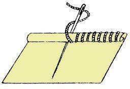 Круглый ручной шов может быть использован для обработки края волана, оборки, низа трикотажной юбки и т.д. Если у вас есть оверлок выполняющий ролевый шов, то намного красивее и легче сделать такую обработку оверлоком. Срез отгибают в сторону изнанки на 0,3 - 0,5 см, набирают 2 - 3 нити ткани около подогнутого среза и 2 - 3 нити на сгибе. Не обязательно затягивать нить после каждого стежка, для ускорения работы можно делать это после 30 - 45 стежков. Плотность шва - 3 стежка на 1 см.
