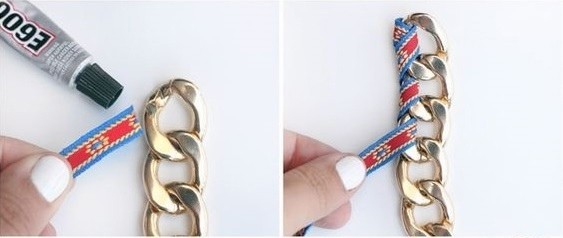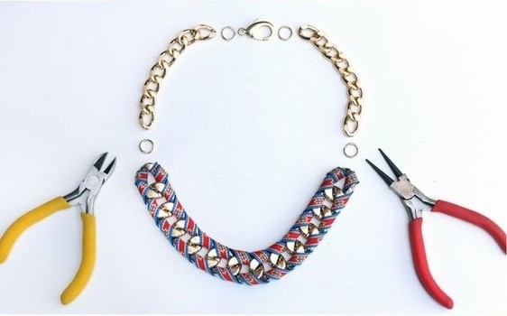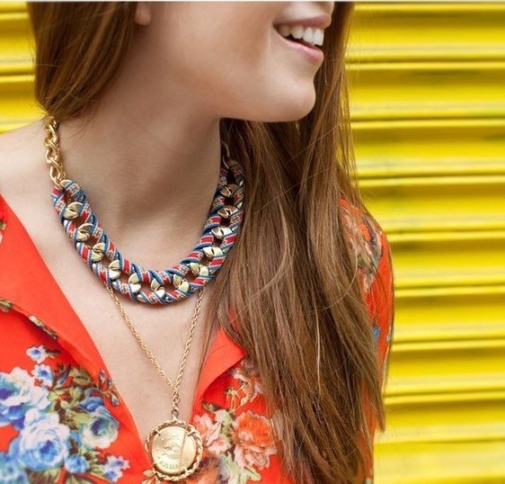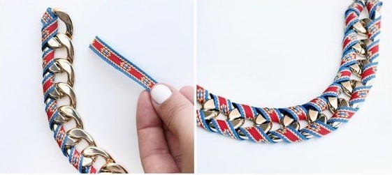 Колье из лент и цепочек будет хорошо сочетаться как с будничными образами, так и с праздничными.