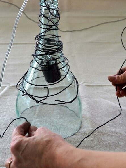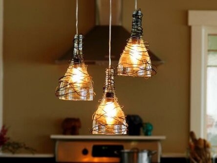 Люстра-подвес из бутылок подойдет и для кухни, и для дачи, внося особую изюминку.