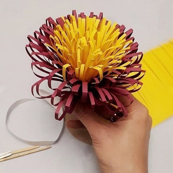 Простой букет цветов из бумаги при желании можно повторить в фоамиране.