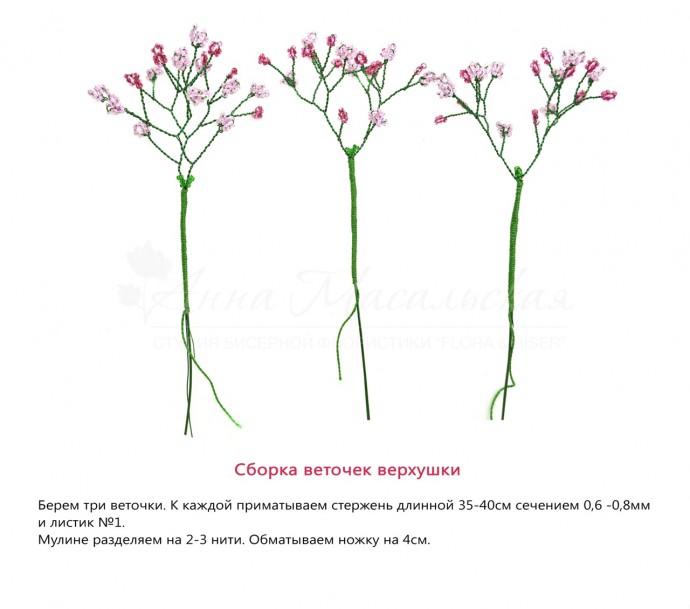 Цветок из бисераАвтор: Третьяков Миша.С помощью линейки отмеряем 7 отрезков проволоки длиной 40 см. (6 для лепестков и 1 для листочка). Берем один из отрезков проволоки. Складываем...