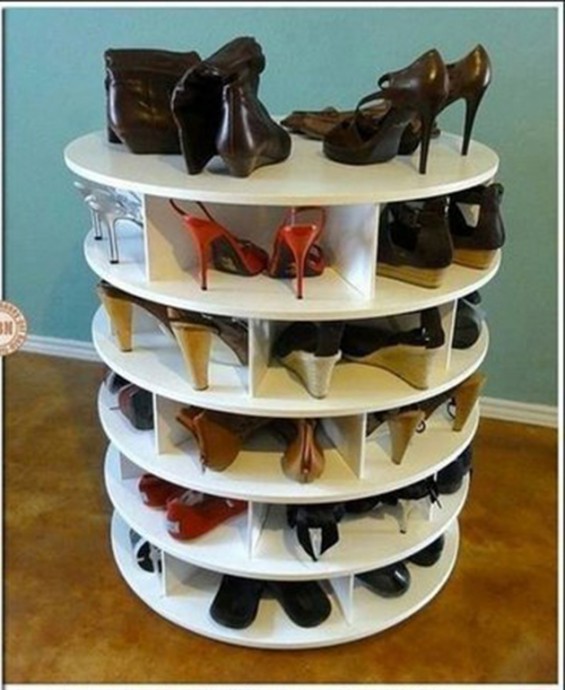 Прекрасная идея для экономии места в коридоре благодаря вращающейся обувнице поможет в организации пространства дома.
