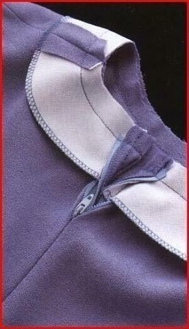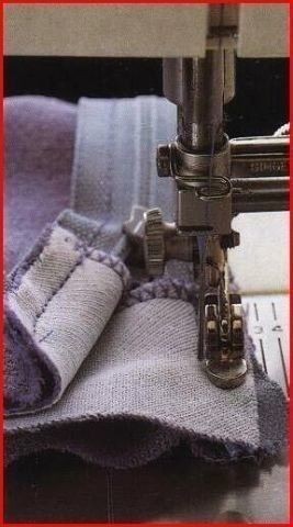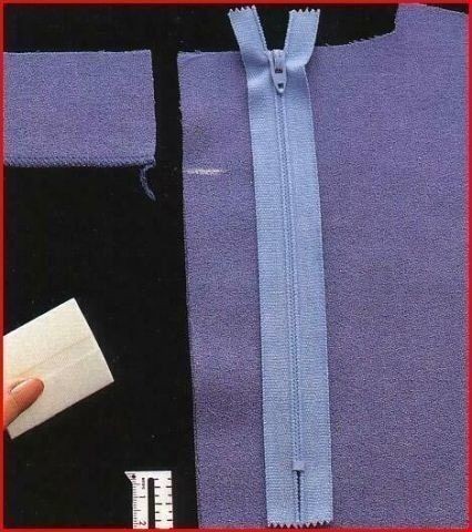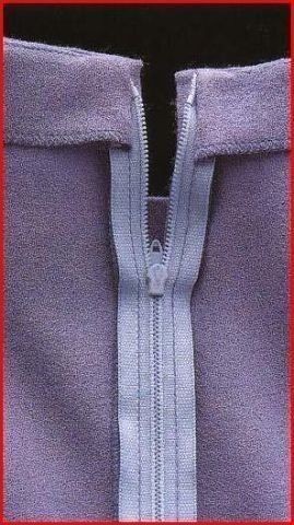 Втачать «молнию» по середине переда или по середине спинки не так сложно, как может показаться на первый взгляд. Применяя предлагаемый способ, обтачку притачивают раньше «молнии», а притачной пояс — после обработки застежки. Такая «молния» обычно бывает сзади на платье или блузке или на юбке и брюках.1) Отрежьте по 2 см от прямых концов подшивки. Подложите прокладку. Прострочите. Обработайте край.