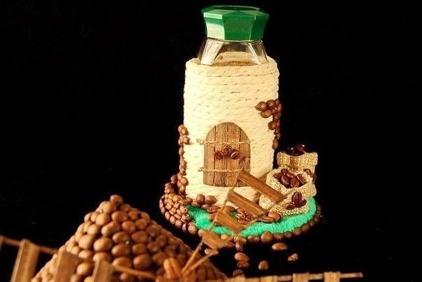Мельница из бечевки и баночки кофе это украшение интерьера, которым можно гордиться.