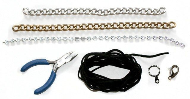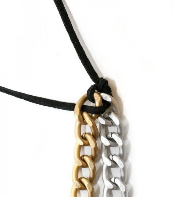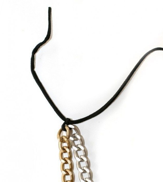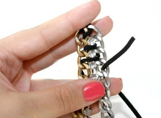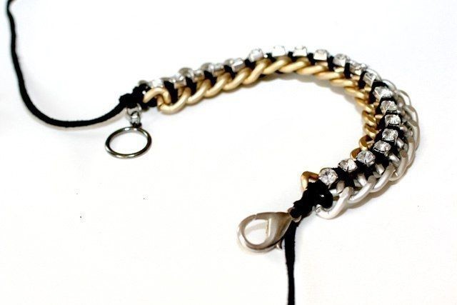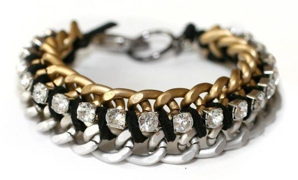 Браслет, который подойдет подо всё, сочетает в себе цепочки двух цветов и полоску со стразами.