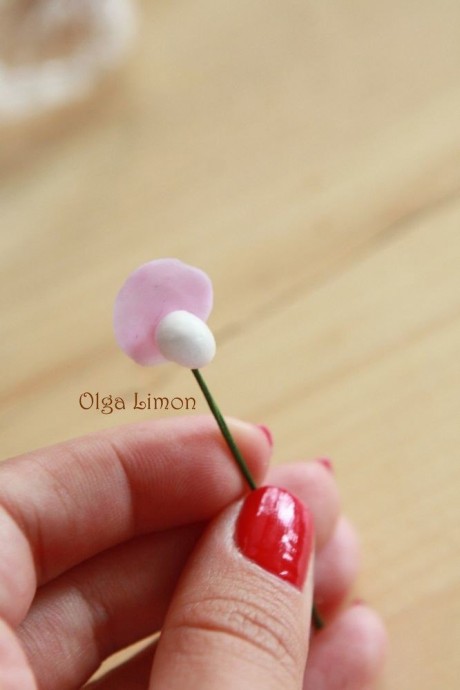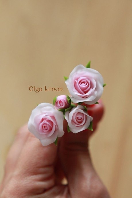Лепим из холодного фарфора маленькие розочки, которыми можно украсить, например, верх ложек или заколки.