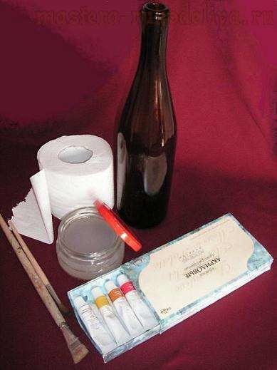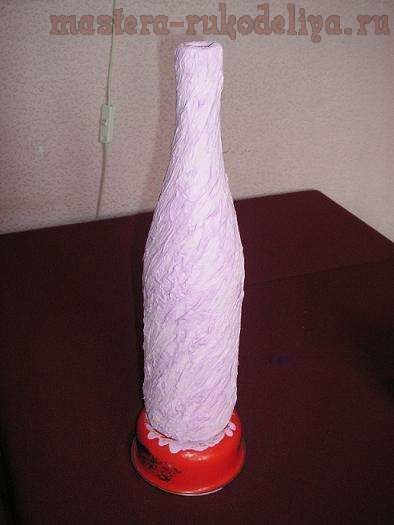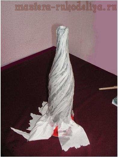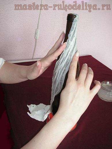 Декорирование бутылки туалетной бумагой