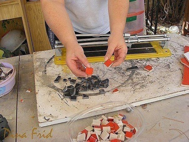 Можно сделать из остатков битой плитки.