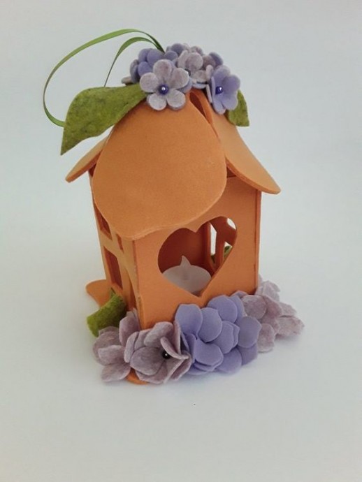 Декоративные фетровые скворечники и фонарики символизируют расцет жизни и весны.