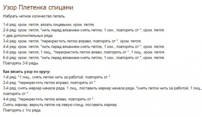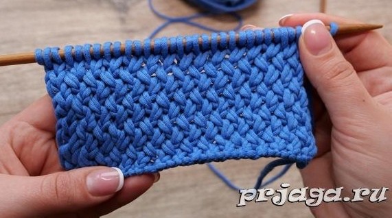 Плетенка на лицевых рядах спицами выглядит объёмно и нарядно.