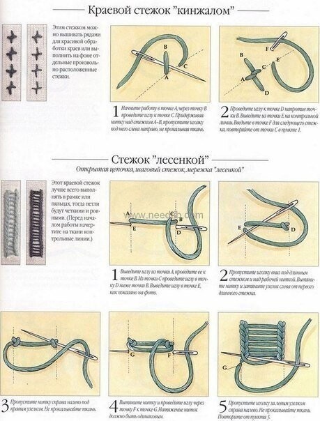 Большое количество красивых швов, которые дают возможность создавать с помощью рук и иголки красоту, которая западает в сердце.