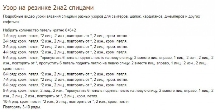 Узор на резинке 2 на 2 спицами