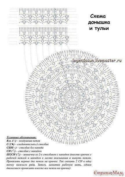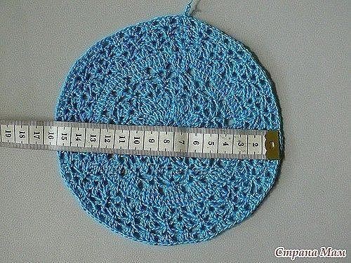 Схема донышка и тульи (см. ниже) на ОГ 49-50 см. До 13 ряда включительно на все размеры вяжем одинаково.