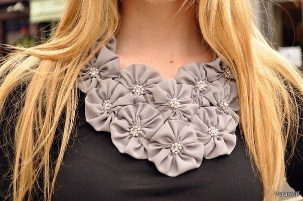 Интересное украшение горловины цветами из ткани подойдет и для торжественных случаев, и для романтических выходов.