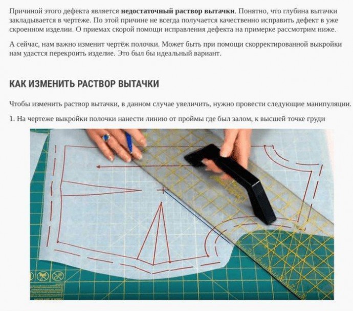 Такие дефекты обычно возникают при подгонке среднестатистической выкройки на реальную фигуру...