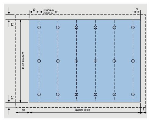- Шнур, три отреза. Каждый из расчета 2 длины шторы +1 ширина шторы.