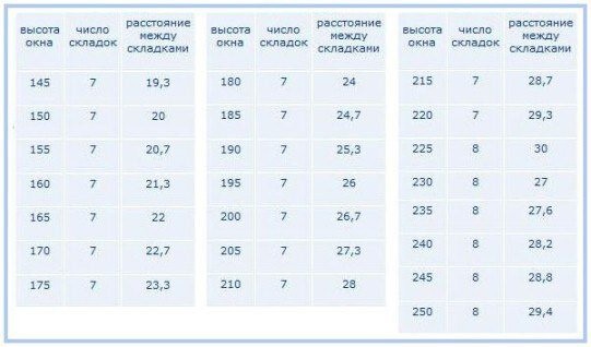 Правильно измерьте оконный проем, прибавьте + 5 см на боковые швы и +12-15 см на припуски вверху и внизу римской шторы. Чтобы сшить римские шторы своими руками, рассчитайте необходимое количество и размер складов в зависимости от длины будущей шторы (см. таблицу).