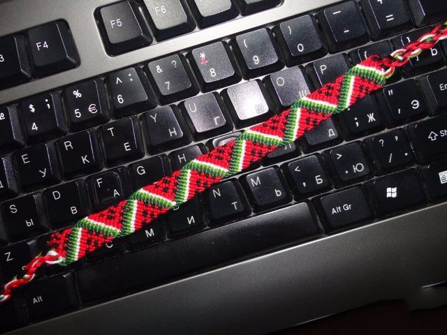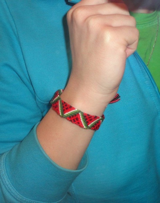 Арбузный браслетик можно сплести для летнего отдыха и вечерних прогулок под луной жаркими вечерами.