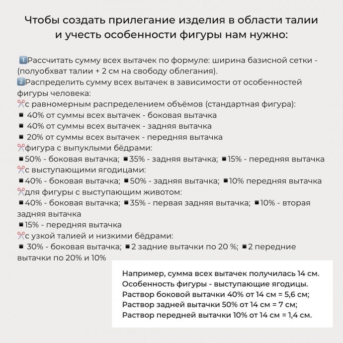 Здесь может помочь анализ особенностей фигуры и правильное распределение раствора вытачек.(Как учесть особенности фигуры и распределить раствор вытачек, смотри в фото).