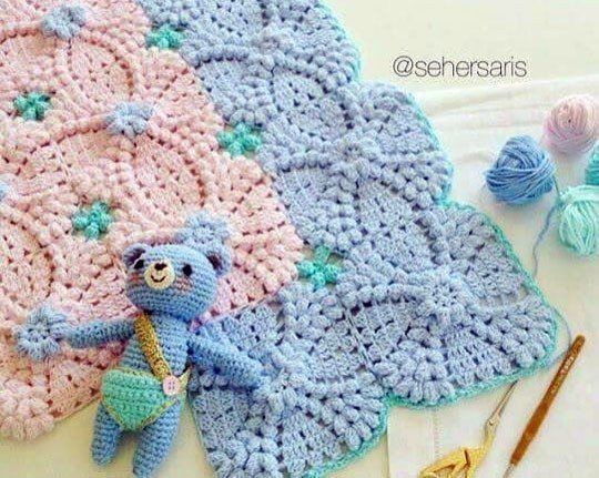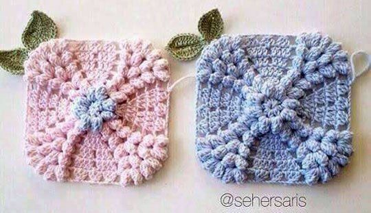 Объёмный квадратный мотив идеален для шалей, палантинов, пледов и покрывал.