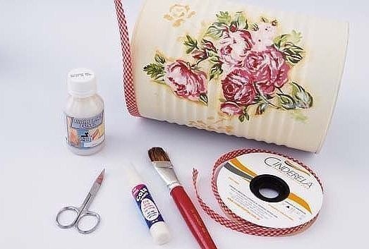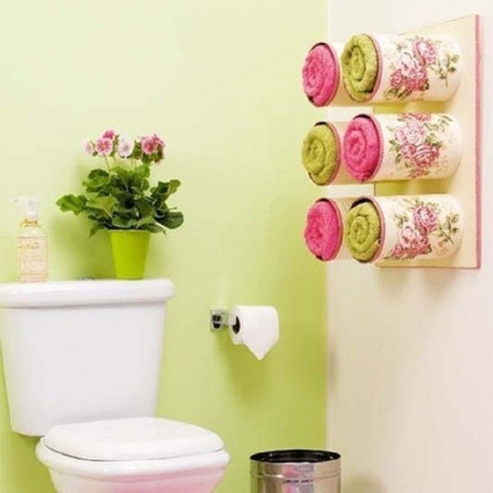 Добавляем к дестяным банкам немного краски и декупажа - и получаем очень красивые держатели для полотенец.