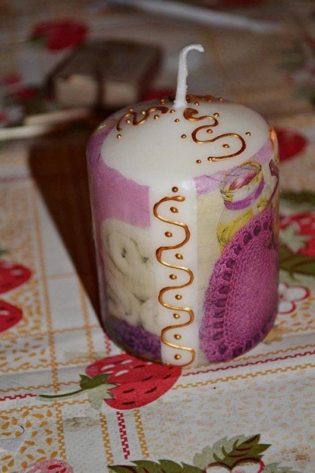 Декупаж — это отличный способ сделать декоративную свечу своими руками, не прилагая к этому больших усилий.