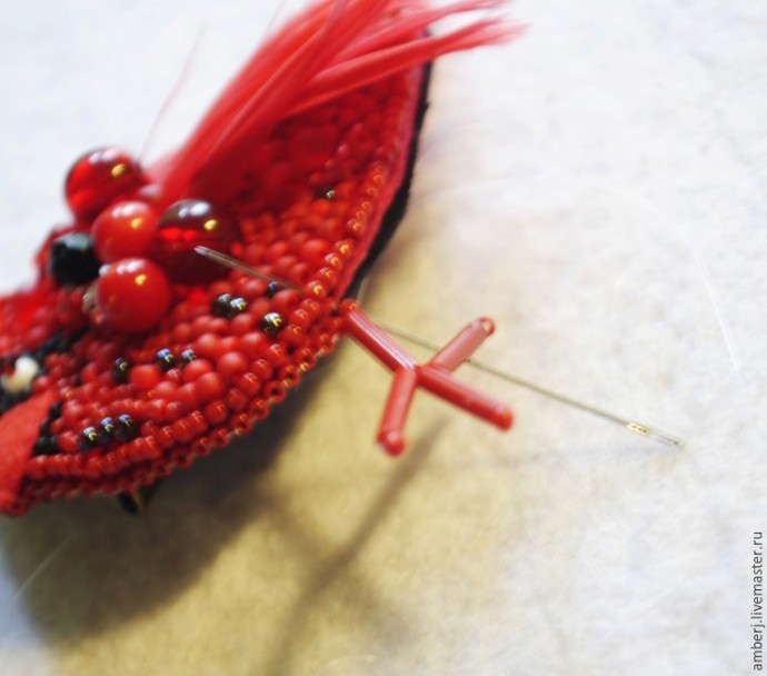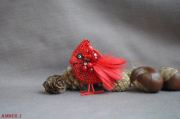 Брошь птичка "Красный Кардинал" станет любимой благодаря своей яркой самобытности.