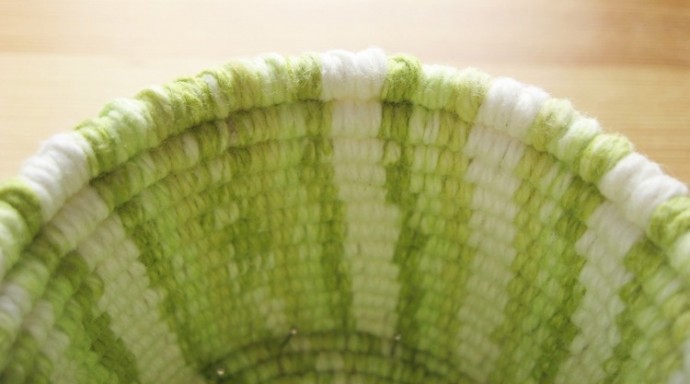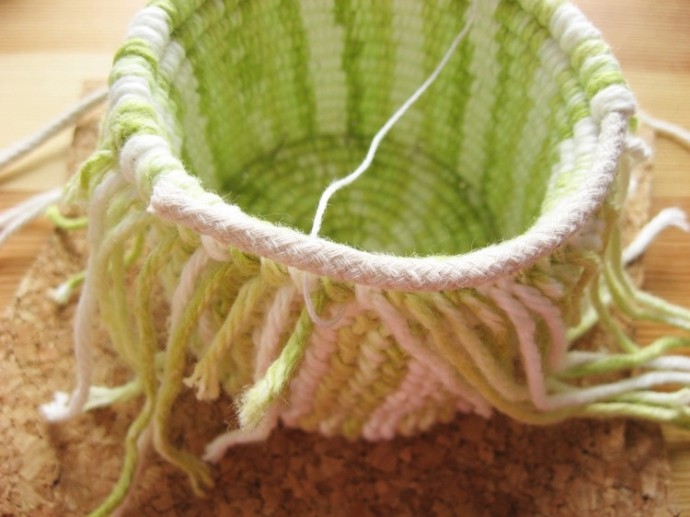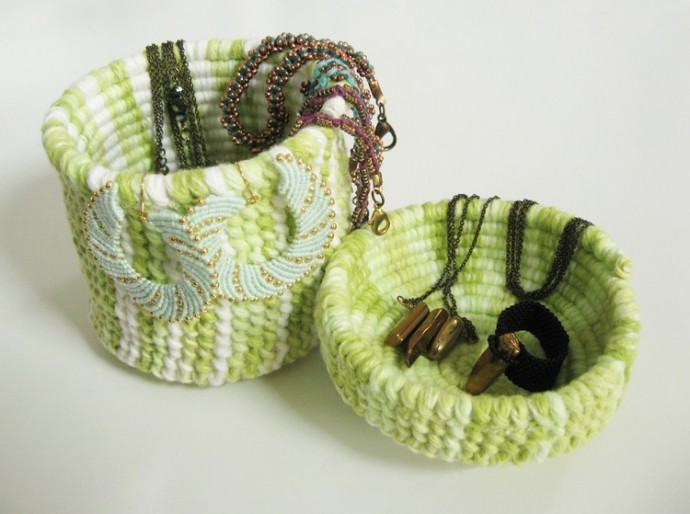 Плетёная корзина в необычной технике при необходимости может потом стираться даже в машинке.