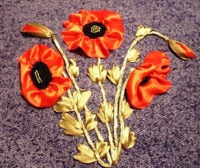 Как вышивать маки лентами