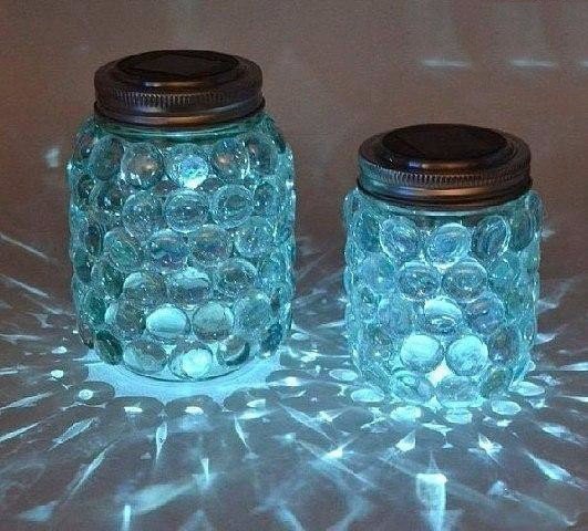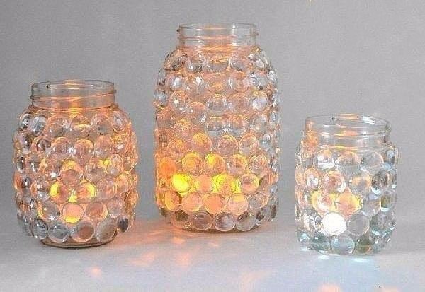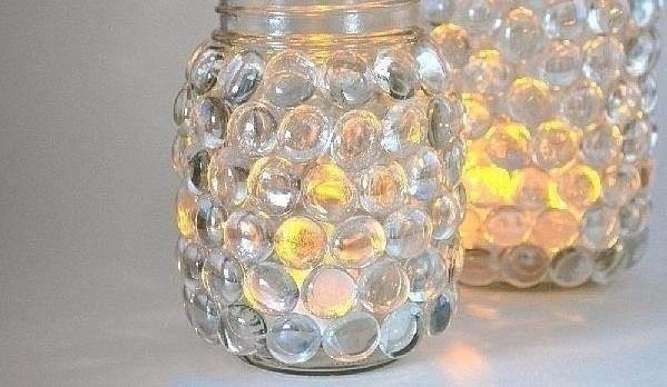 Необычные светильники своими руками можно создать из самых простых банок и камушков из стекла.
