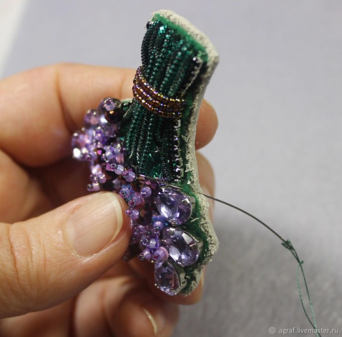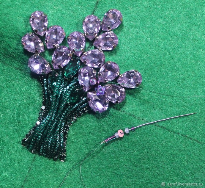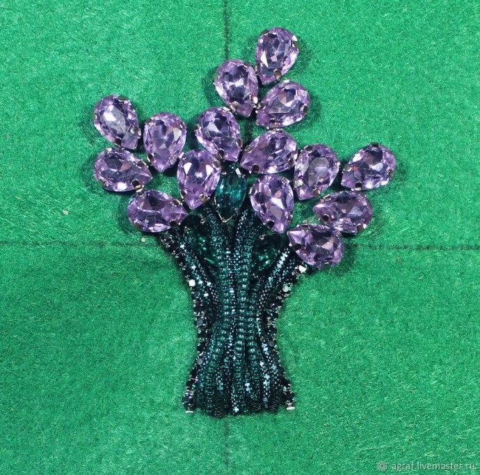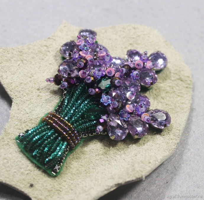 Брошь "Пышный букет лаванды" это универсальное украшение для плотных вещей.