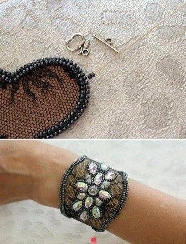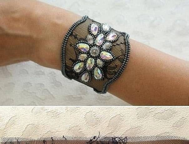Оригинальный браслет в необычной технике будет уместен для романтических образов и для праздничных выходов.