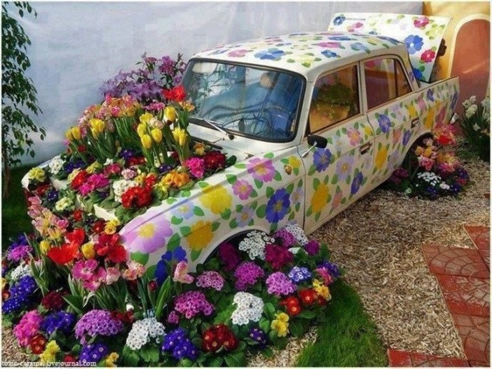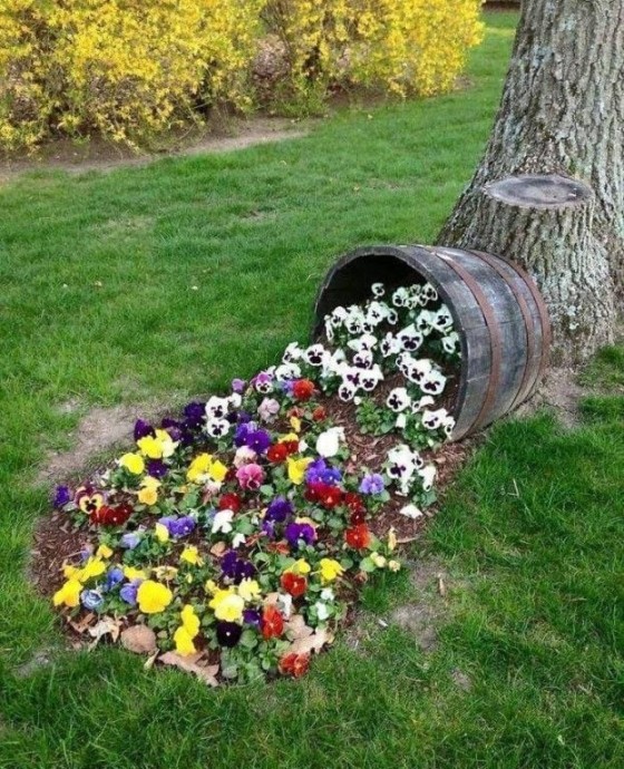 Это дело веуса. Мне очень понравилась идея с бочкой, из которой «выливаются» цветы.