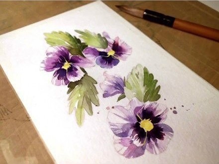 Анютины глазки акварелью
