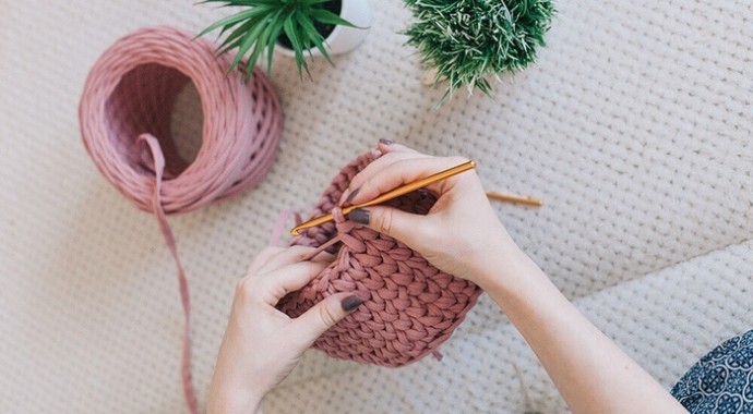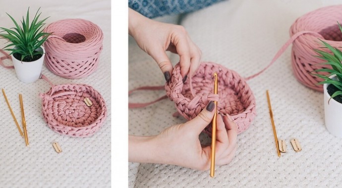 Корзинка из трикотажной пряжи