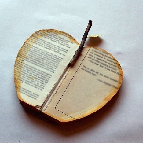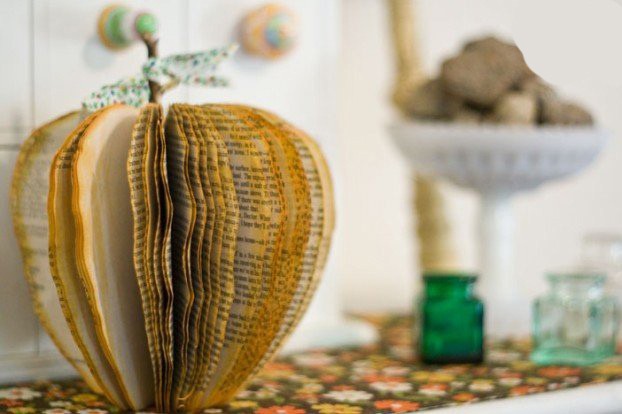 Стильный аксессуар - яблоко из старой ненужной книги - станет отличным украшением стола или дома.