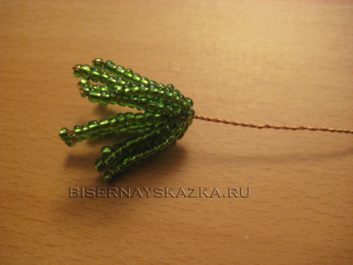 Цветок из бисераАвтор: Третьяков Миша.С помощью линейки отмеряем 7 отрезков проволоки длиной 40 см. (6 для лепестков и 1 для листочка). Берем один из отрезков проволоки. Складываем...
