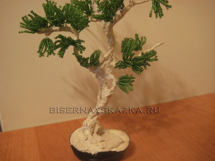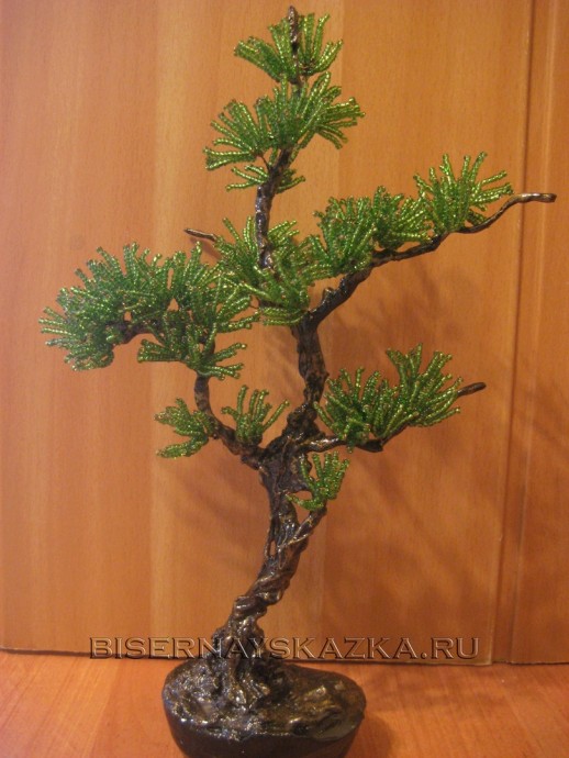 Сосна из бисераКогда придет новый год, ее можно будет украсить крохотными елочными шариками.