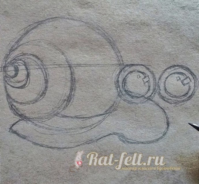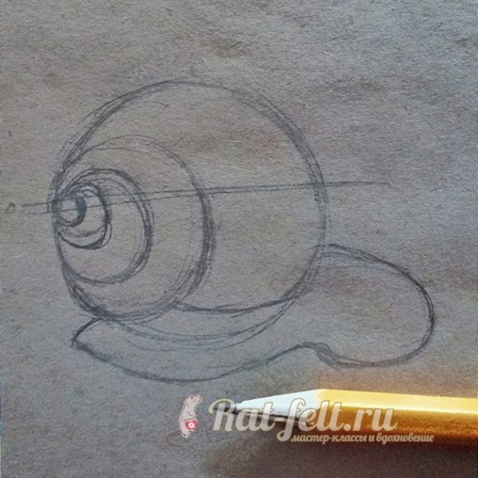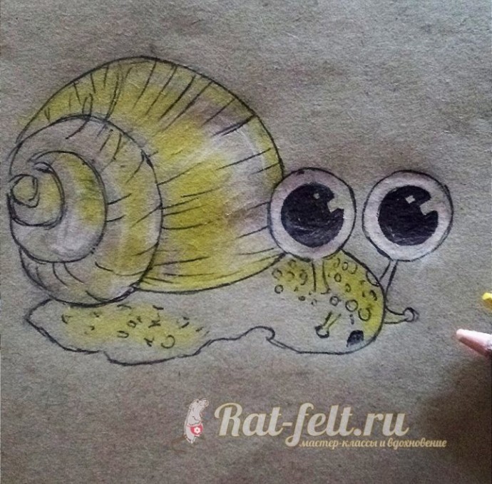Рисуем улитку цветными карандашами на крафт-бумаге