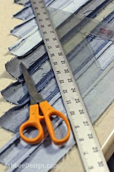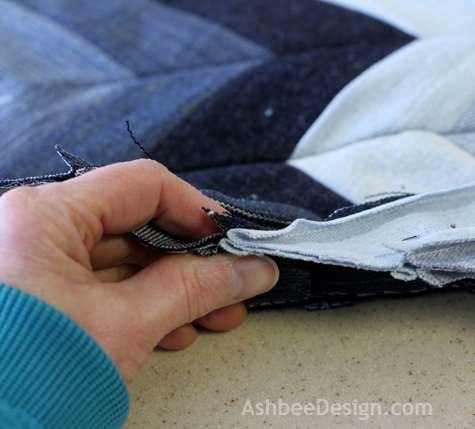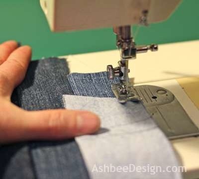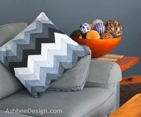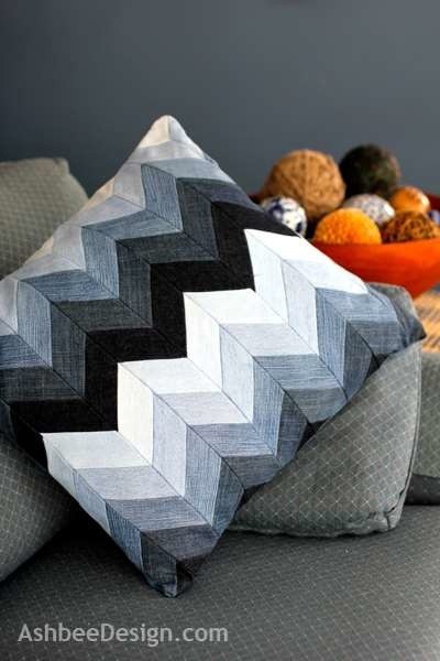 Для создания такой подушки с градиентным узором важно, чтобы джинсы были разных цветов.