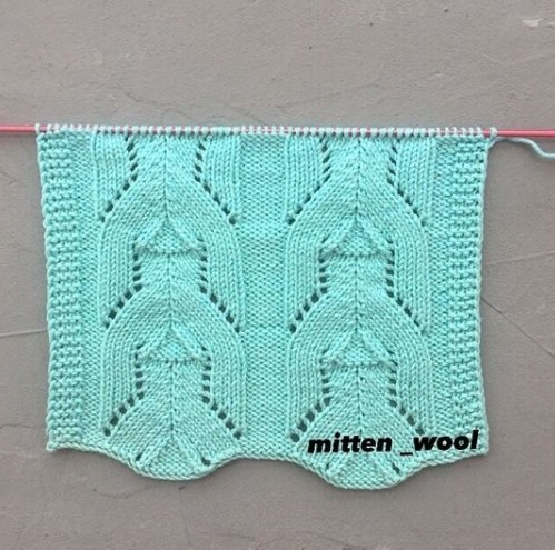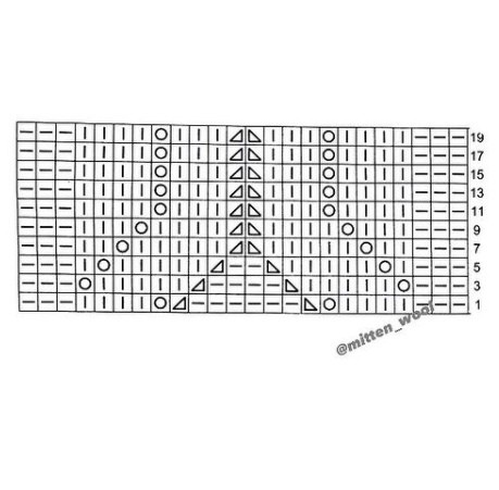 Начинаем вязать с 1-й кром.п., повторяем петли раппорта, закончить 1 кром. п.